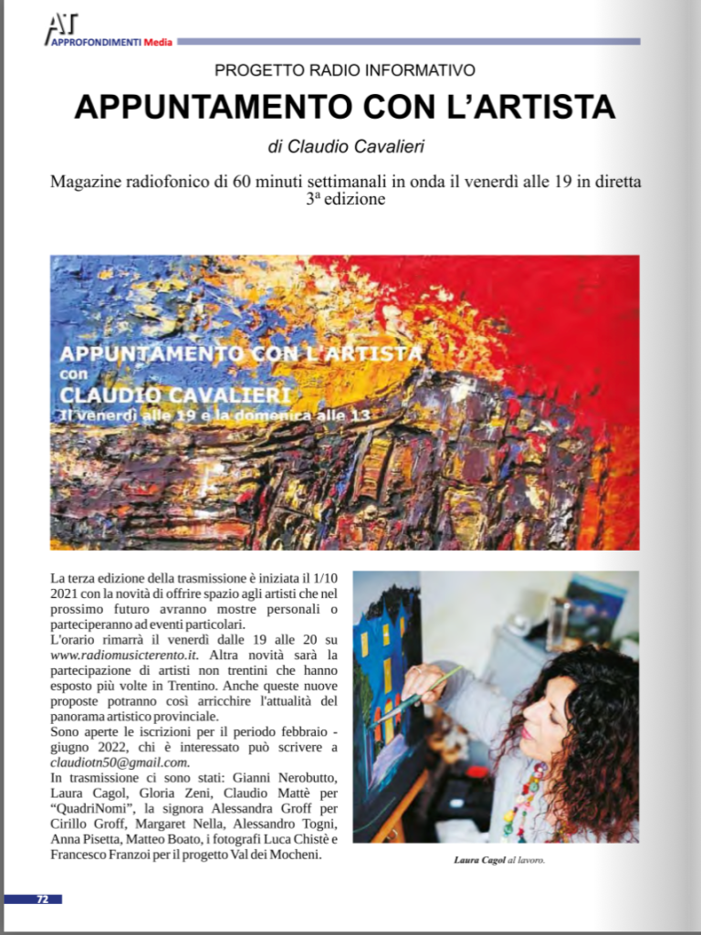 Nel 2019/2020 frequenta i corsi di pittura sotto la guida dell’artista Alber Dedja. Attraverso l’insegnamento del maestro e immersa in un ambiente artistico stimolante, Laura studia alacremente e comincia a indagare il suo stile pittorico. “Ho imparato la tecnica dell’acrilico e dell’olio e le basi del ritratto. E’ stata una vera rivelazione per me, in quanto ero convinta di essere negata per il disegno e per il figurativo. Riuscire a disegnare dei volti e dar loro vita attraverso il colore, i volumi, e l’espressione mi ha emozionata moltissimo. E naturalmente questa è stata la motivazione a continuare a studiare e sperimentare. Il primo Lock-down, con lo spaesamento che ne è derivato, è stato un periodo incredibilmente fertile dal punto di vista creativo. Se non avessi avuto la pittura ad accompagnarmi, non credo che lo avrei superato con tanta leggerezza.”