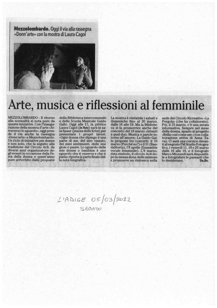Personale “Attraverso lo sguardo”, Sala Spaur, Mezzolombardo, dal 5 al 20 marzo 2022.