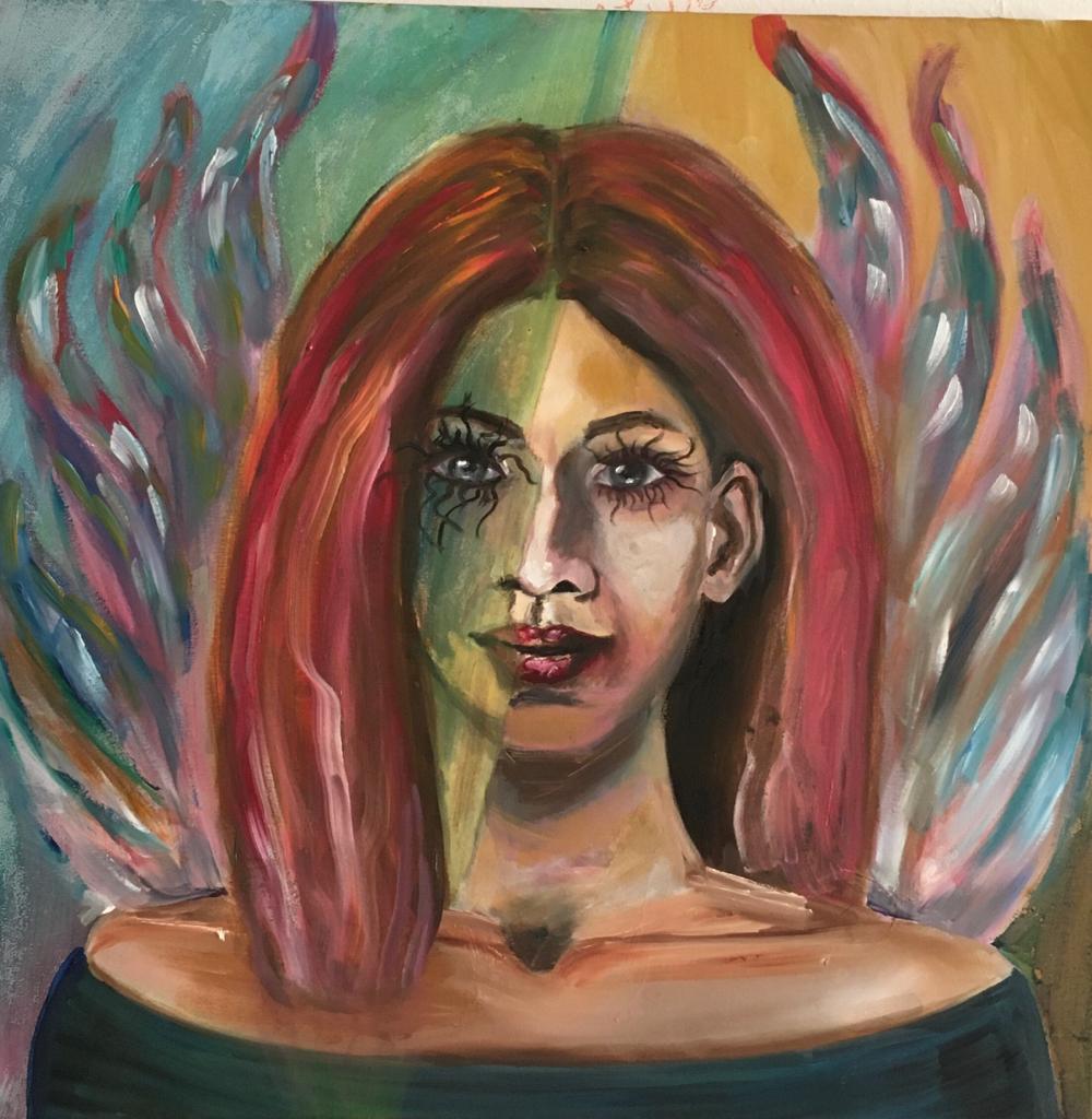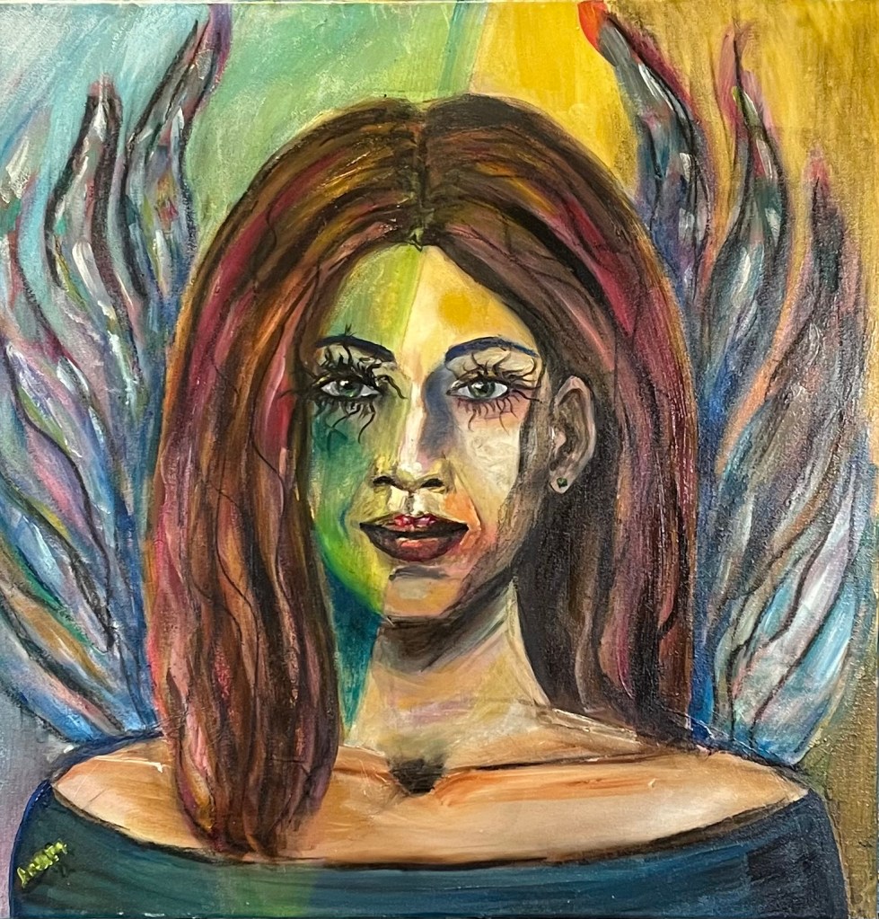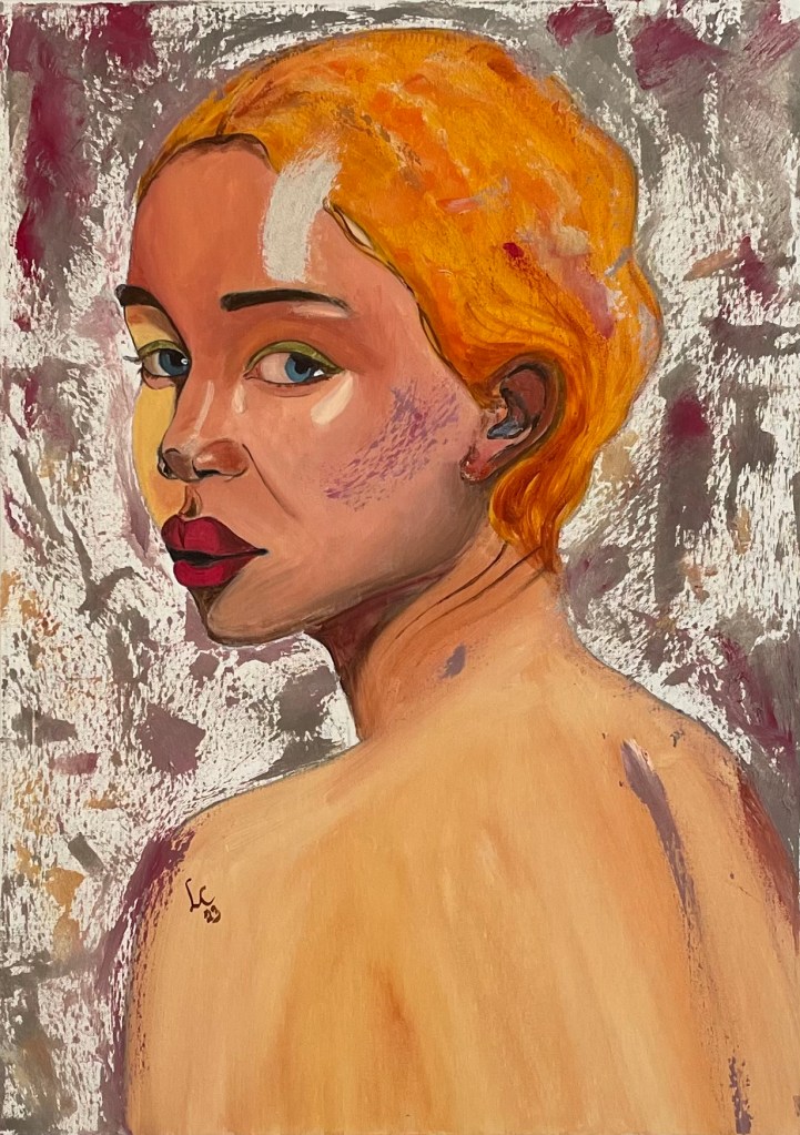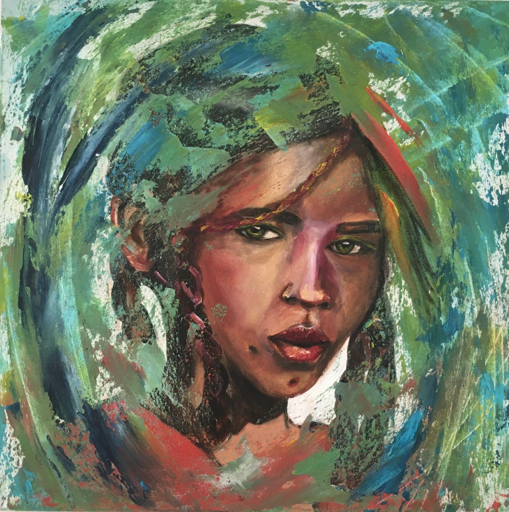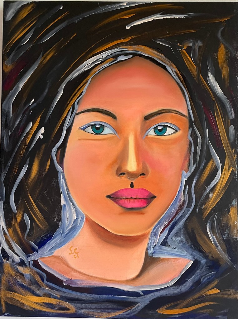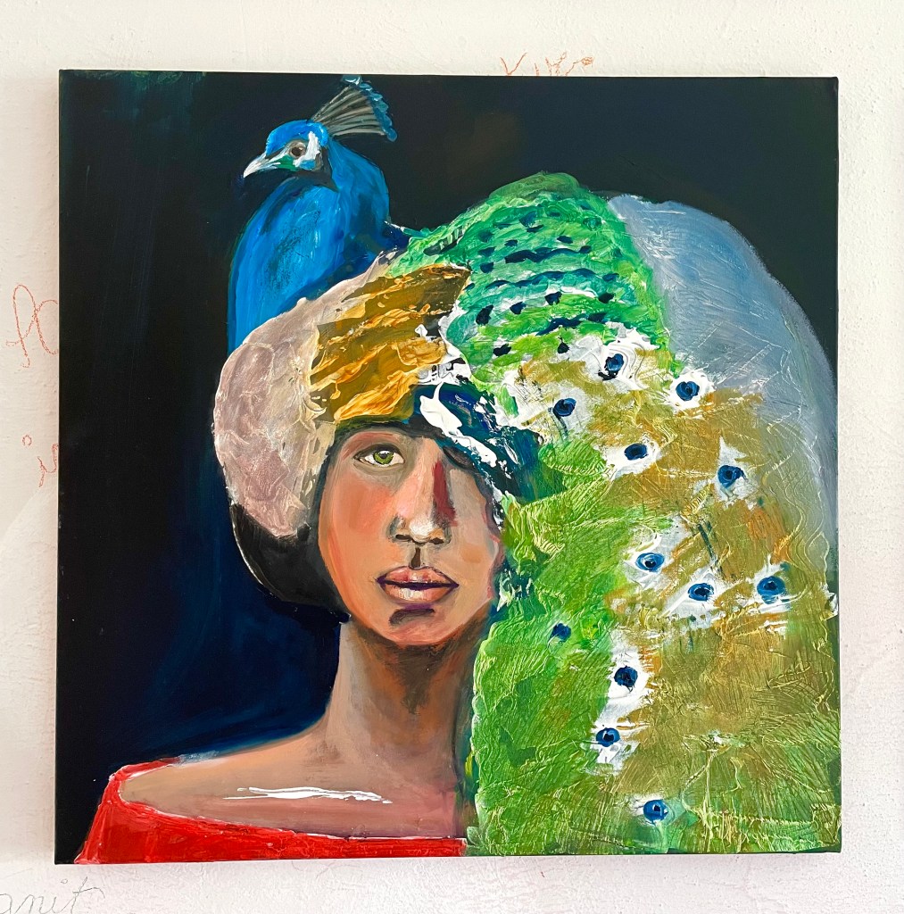 Ragazza tigre, tecnica mista, 40×40, 2024
